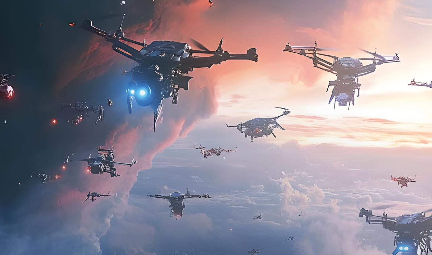 Концепция роевых дронов предполагает использование сотен беспилотников, координированных как единая система. На поле боя рой дронов способен выполнять сложные задачи (от разведки до атаки), действуя автономно и скоординированно благодаря искусственному интеллекту.